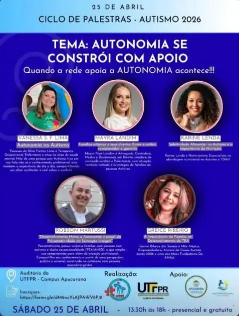 No Ciclo de Palestras em Apucarana, o foco será o autismo e o fortalecimento da autonomia. Essas palestras são uma ótima oportunidade para aprender mais sobre o Transtorno do Espectro Autista.