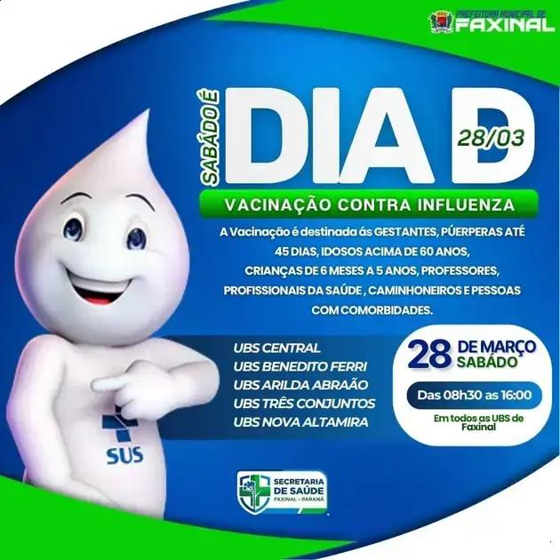 O Dia D de vacinação contra a gripe em Faxinal é uma chance imperdível para cuidar da sua saúde. Neste sábado, dia 28, todos estão convidados a se vacinar. É fácil e rápido!
