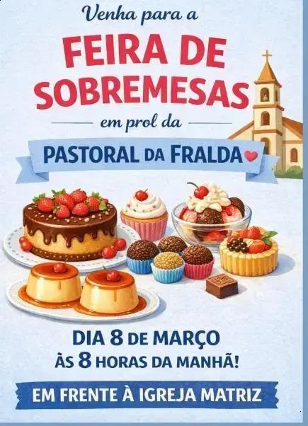 As sobremesas que serão vendidas incluem bolos, tortas e doces tradicionais. Todos são preparados com muito carinho por voluntários da Pastoral da Fralda. Venha testar essas delícias enquanto colabora para uma justificação tão importante.