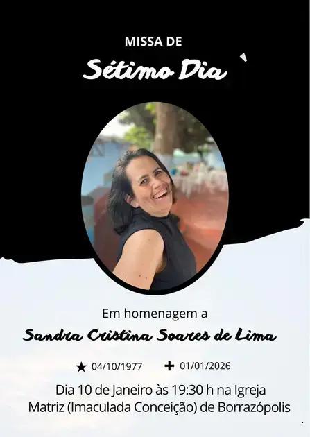 A celebração em memória de Sandra Cristina Soares é um momento próprio que reúne amigos e familiares. A missa será realizada na igreja da comunidade de Borrazópolis. Durante a cerimônia, lembranças e histórias de vida serão compartilhadas.