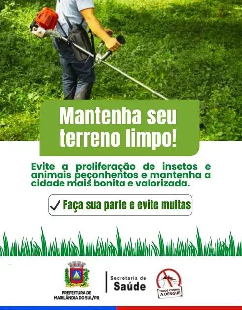 Vamos juntos manter Marilândia do Sul mais limpa e saudável. A limpeza dos terrenos é um pequeno ato que traz enormes benefícios para todos!